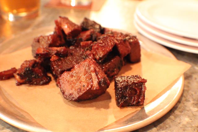I loved the burnt ends appetizer. It’s a 1/2 lb. of double “smoqued” brisket cubes caramelized in their house BBQ sauce. Price? $11.49 (according to their website). This is on the higher-end of what I typically like to pay for an appetizer but I am not sorry because this was simply delectable. I would totally get this again, and it feeds at least 3 people so $12 just became $4 of awesome meat in my mouth. Let’s see how many inappropriate meat references I can make in one post…