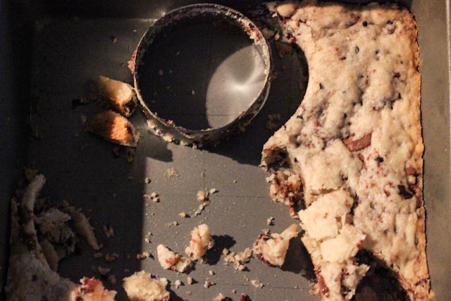 3. Take plastic wrap off and put in the oven for 25-30 minutes. Make sure the edges are browned and the middle doesn’t sink when touched. Let cool on wire racks for 20-30 minutes before cutting into squares or into shapes using a cookie cutter.