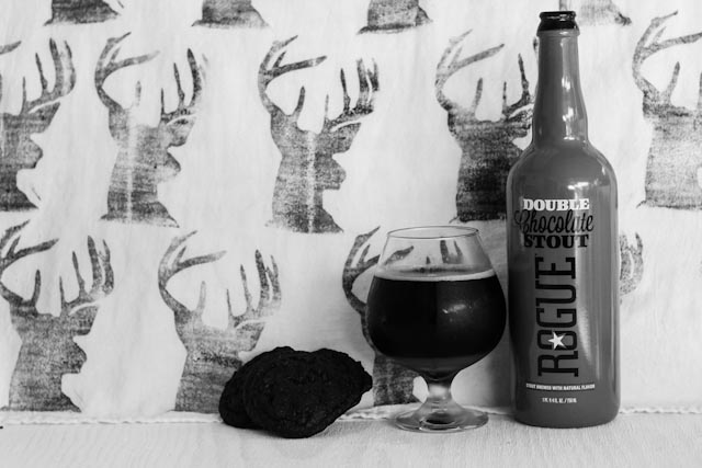 Made with dark chocolate, dark chocolate chunks, cocoa nibs, dried cranberries, dried cherries, and a rich double chocolate stout made by Rogue, this cookie really has something for everyone. I was a skeptic of using dried fruits in baked goods until I tried this mixture. There is something about a rich dark chocolate cookie getting a lift from a tart and chewy dried piece of fruit. I cut the dried fruit into small pieces so it was evenly incorporated throughout the cookies. The last thing I wanted is to have a giant chunk of dried fruit stuck in anyone’s teeth. That’s not pretty.