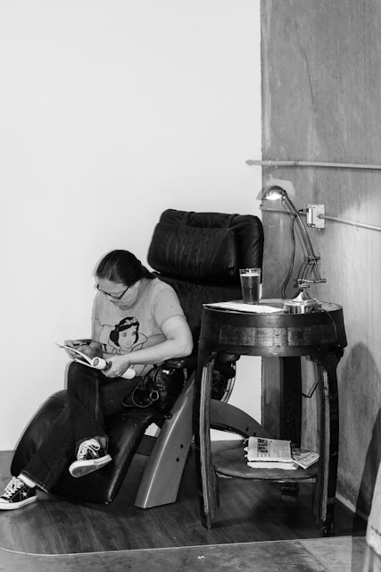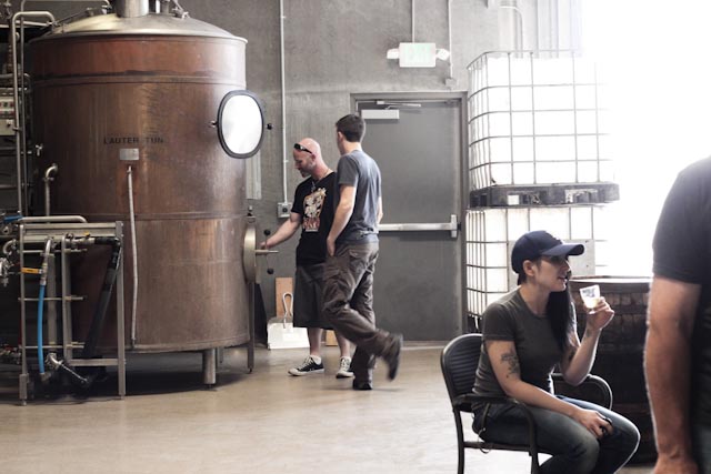 I loved everything about the place. It was long and had two roll-up doors so you had a cross-breeze which doesn’t seem like much but when it’s hot and the brewery is making beer, it’s a life saver. There was a ton of space to walk around and set your beer down on a barrel, or grab a chair and stay awhile. They had these awesome stands made from barrels that I was obsessed with. The one next to the large recliner chair was my favorite. I want that for my house so badly!