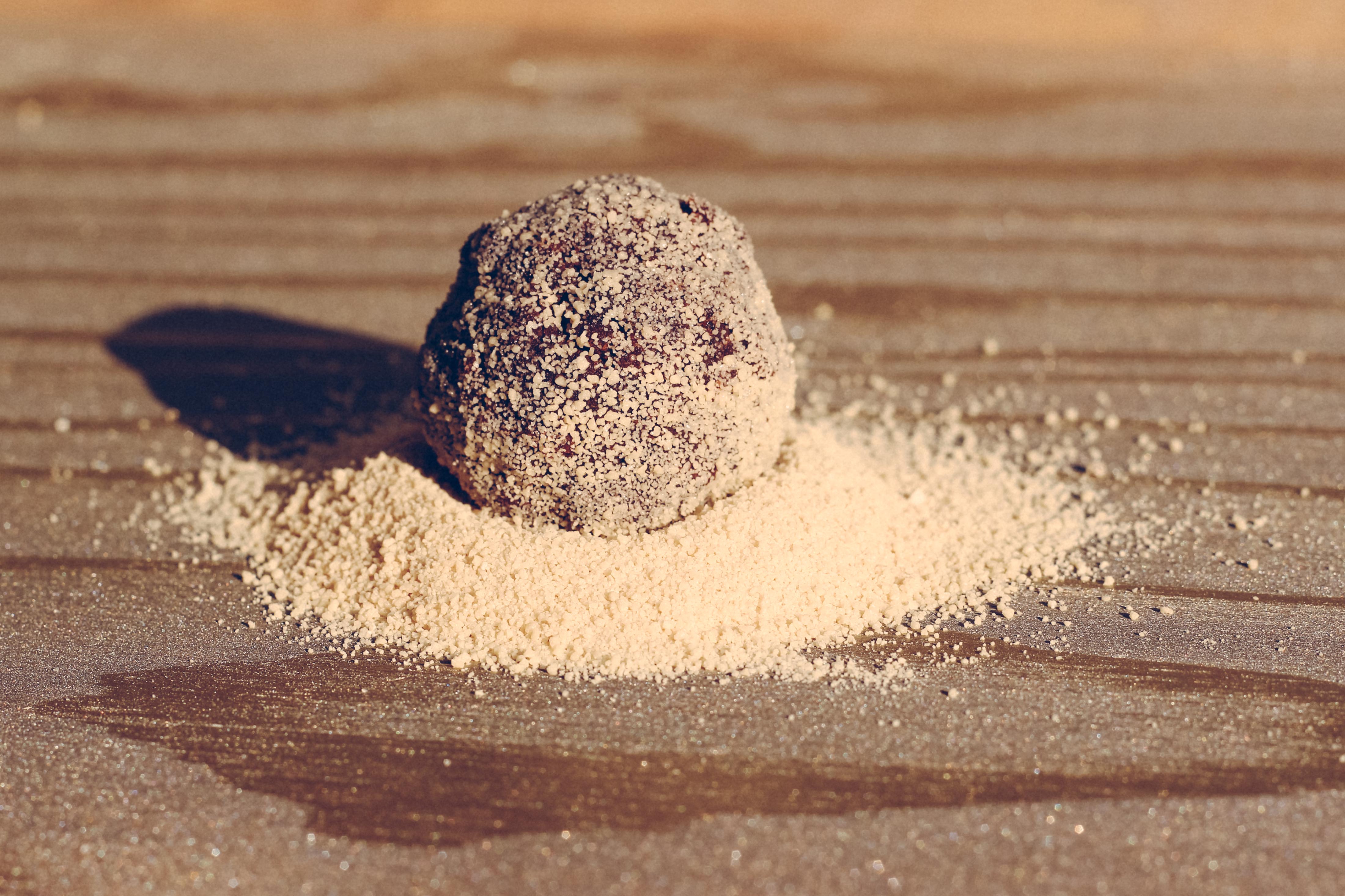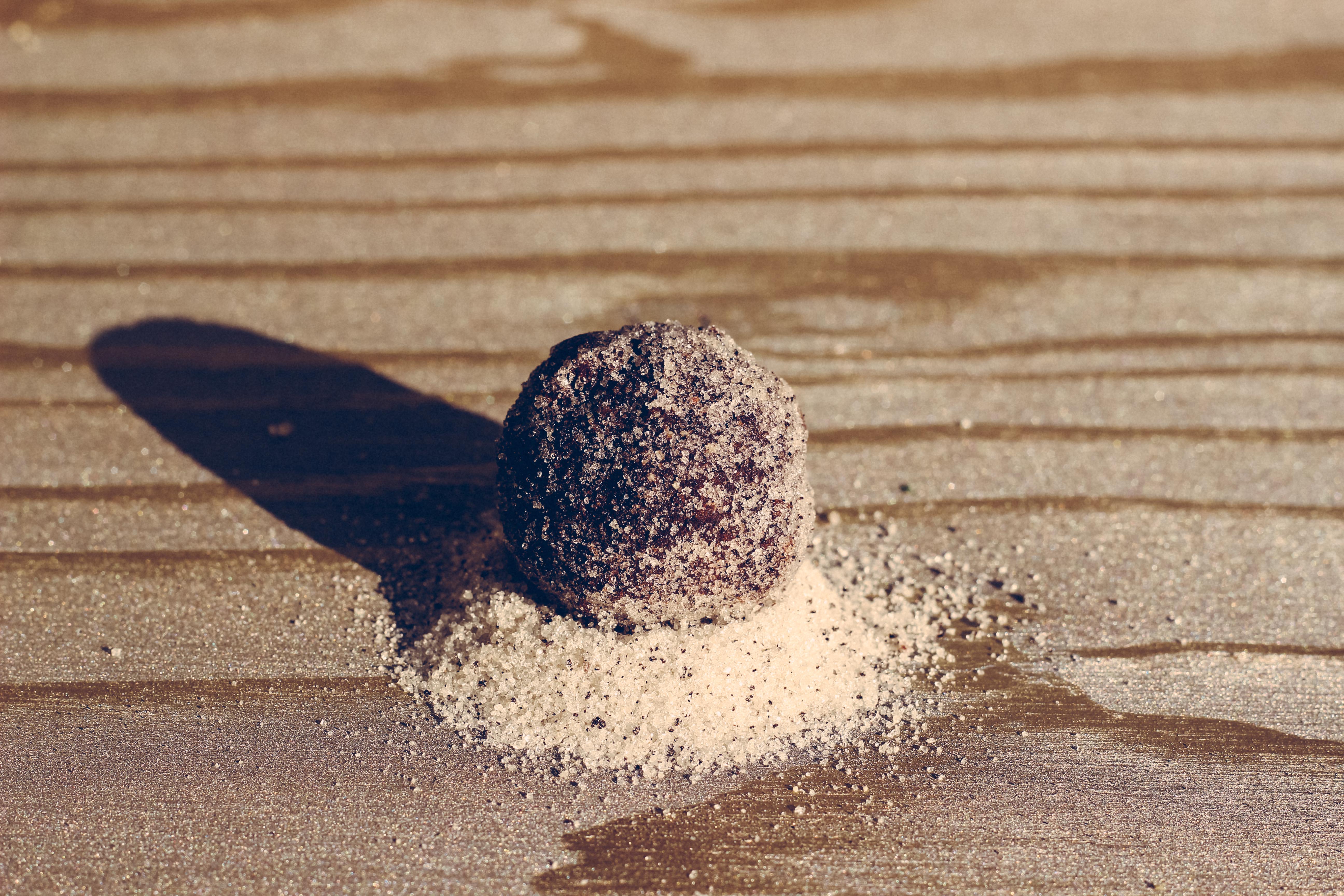 Now that I am back, I wanted to make something I have never made before and after soul-searching and pintresting…I decided on rum balls. Of course, I would be substituting the rum for beer. Deviating from the standard rum ball recipe I also made the additions of some coffee and cinnamon to the batter in hopes of boosting the flavors. I also rolled the beer balls in three different types of sugar: vanilla bean sugar, raw sugar and granulated honey. It made for some interesting texture and flavors! This would be fun for a group to do and then try their different rolled toppings after they have set.