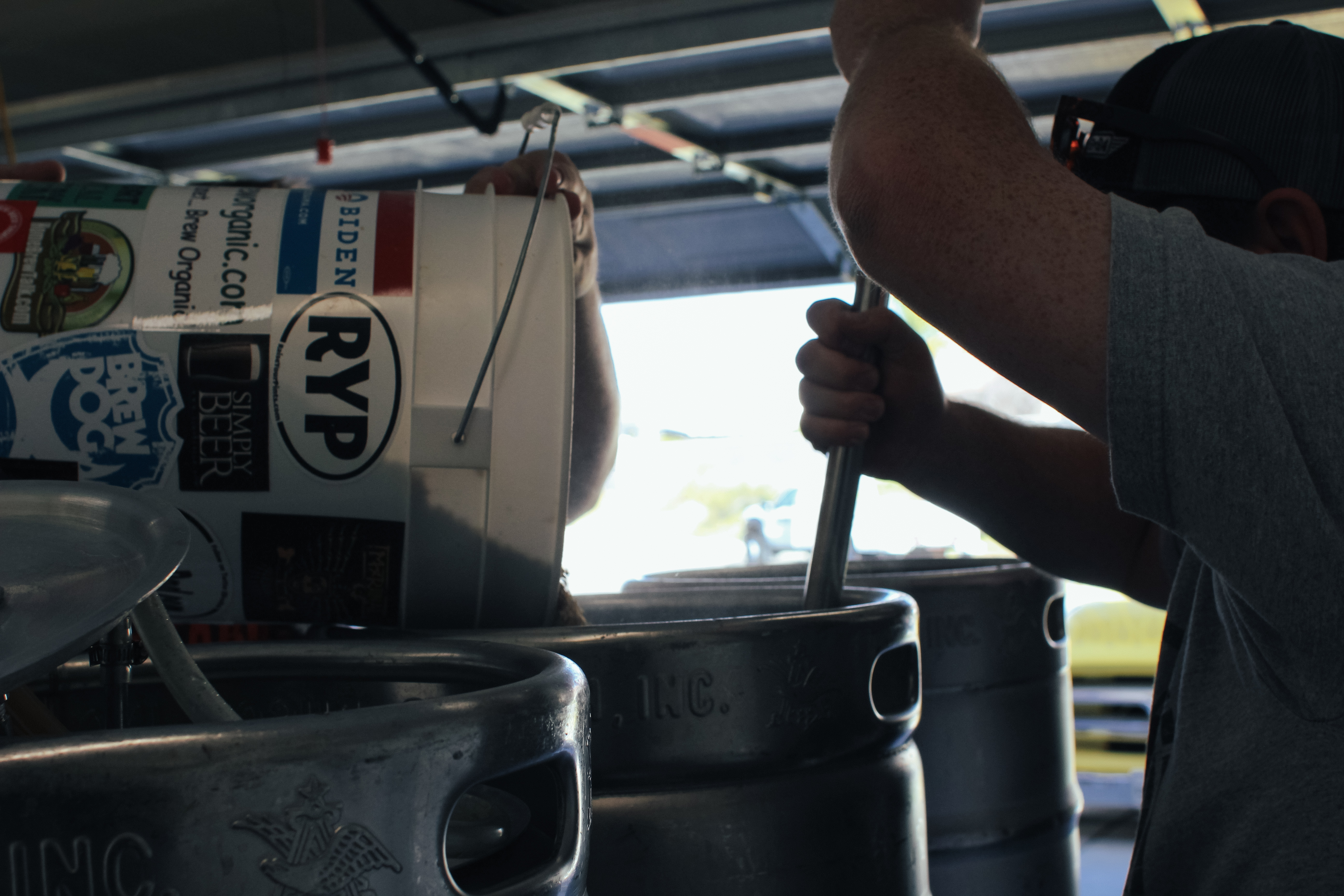 We have previously brewed with John before for our NBTeabag Pale Ale that is made with Irish Breakfast and Earl Grey tea and after fermentation we added pineapple sage and basil and citrus peel. We came over to record a podcast with them and the group of us ended-up killing the keg because it was so tasty. We wanted to make this beer again for the party we are hosting in March to celebrate our marriage with everyone local and John was kind enough to brew the beer with us again. The final beer will be around 5%ABV.