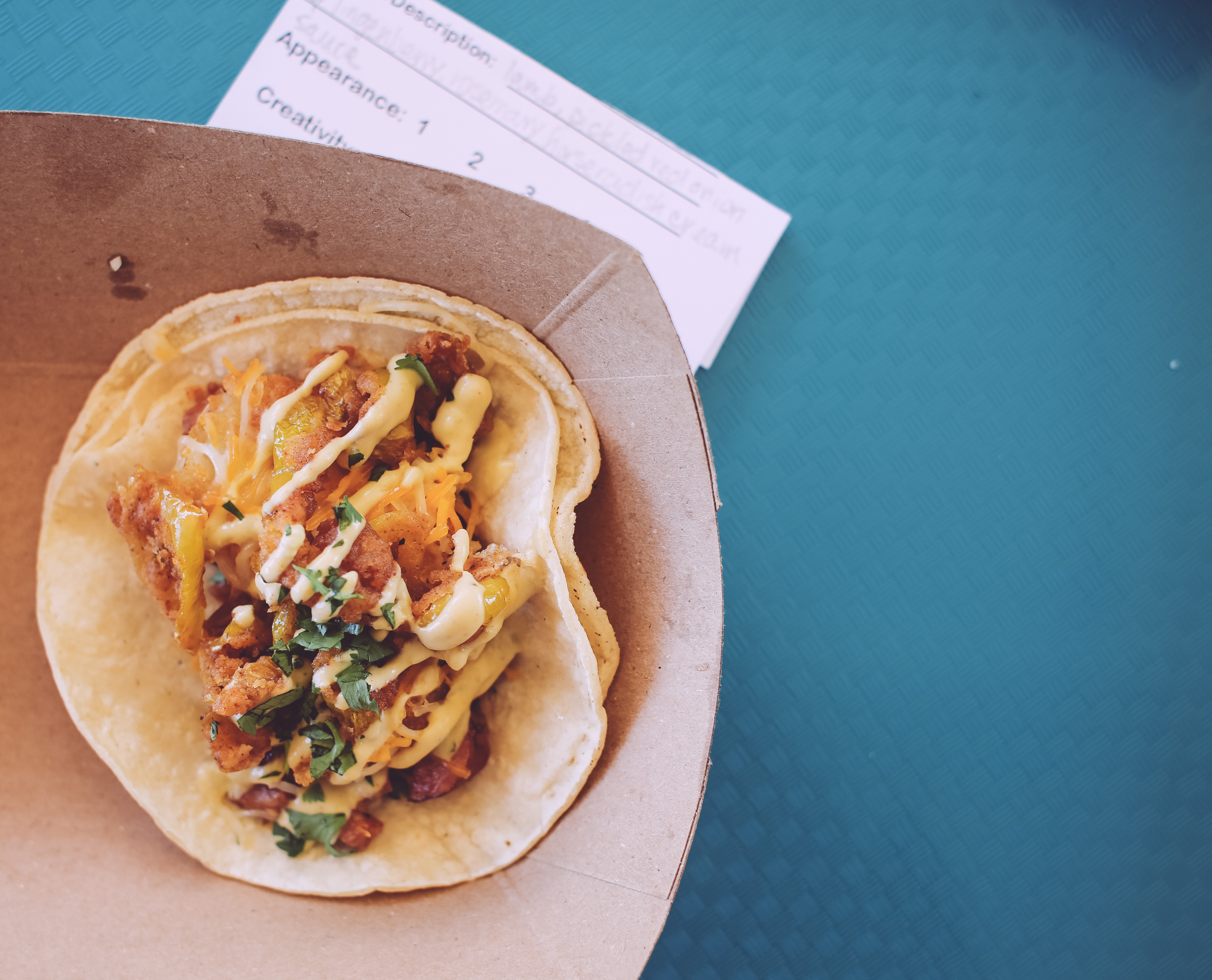 I was again a taco judge this year and got to taste 16 different tacos and judge them based on taste, texture, originality, and visual appeal. I took a picture of each taco and will try and do my best to describe what I thought of each. I honestly don’t know who did most of these tacos because we didn’t look at the name of the restaurant for most of them to rule out any possible bias that might be factored in.