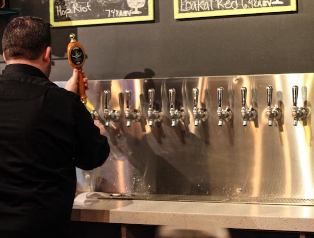 Holding tour tickets in my hot little hand we dashed over to Mother Earth but alas, they had moved locations. We went to the new location and couldn’t find them…and I begin to get frustrated. I make an executive decision and we head over to Iron Fist. The location was easy to find (thank you Iron Fist!) and very welcoming. The beers they had on tap was amazing. Some of the stand-out brews were: Uprising with Champagne Yeast and Tequila Soaked Oak Chips (12%ABV) and Nelson the Impaler (5.5%ABV). The Uprising was really interesting, the Champagne was a really nice play against the Tequila. It was light, and fruity and bitter with a nice after-burn taste of Tequila. I normally hate the taste of Tequila but this wasn’t bad. The only other Tequila beer I was ok with was the Mikkeller Black Hole aged in Tequila barrels. The Nelson the Impaler was great. It was clean and hoppy and was the type of beer you could just have glass after glass of. I also enjoyed the people there, they were warm and friendly. Plus, it’s always a good sign when there is an adorable dog guarding the brewery for it’s owners.